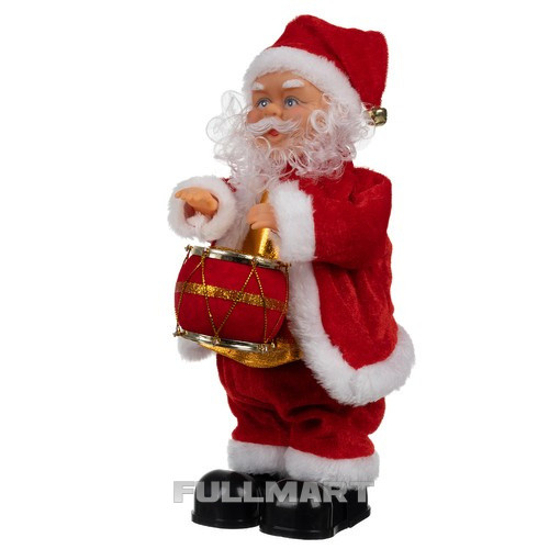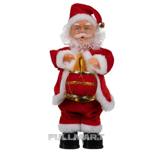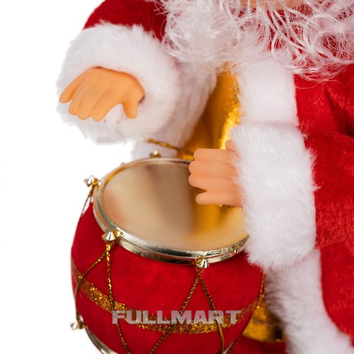 - ВНЕШНИЙ ВИД САНТЫ - на статуэтке изображена фигура Деда Мороза, играющего на барабане, в красном пальто с белым мехом и с белой бородой. Включив его, он бьет руками в барабан, поет и танцует .