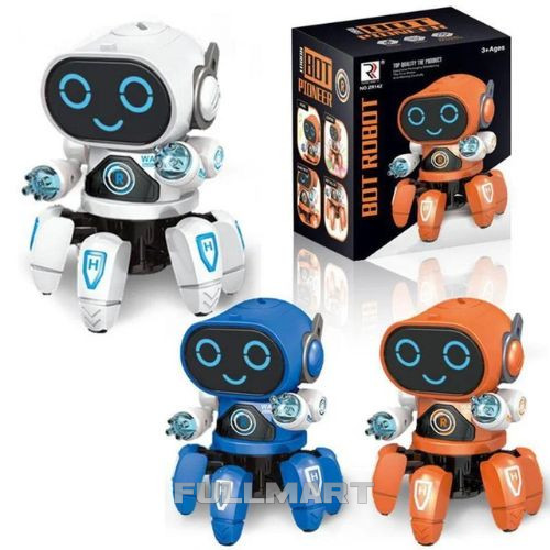 Дивний та милий робот що танцює не залишить байдужими нікого навколо. У робота 5 різних мелодій, під які він танцює і все це під світломузику, яка у нього завжди з собою. Робот смішно рухається на своїх шести ніжках, руки в нього світитися різними вогнями наче ліхтарики.