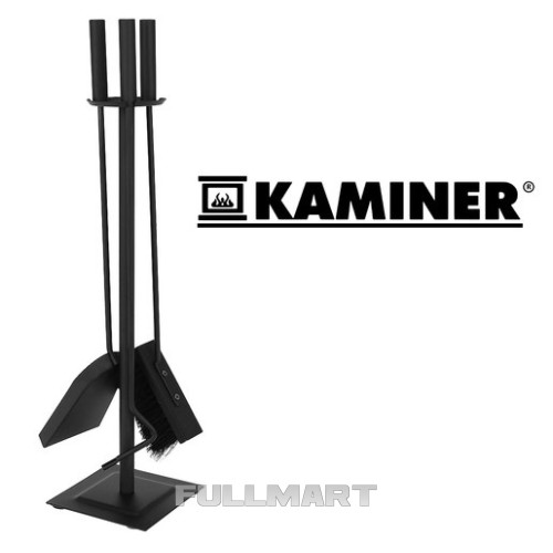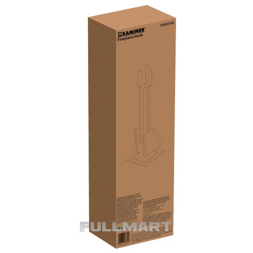 Весь набор для камина помещается на подставку, входящую в комплект . Она оснащена специальными держателями для подвешивания инструментов. Кроме того, снизу расположены четыре нескользящие ножки, предотвращающие скольжение. Классический чёрный набор элегантно впишется в любой интерьер.