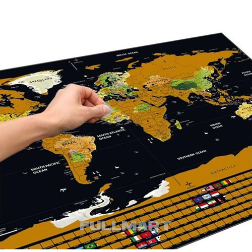 - СКРЭТЧ-КАРТА — декоративная карта, позволяющая путешественникам отмечать страны, которые они посетили, царапая верхний слой. Под поцарапанной поверхностью скрываются красочные флаги и географические детали отдельных стран . Это не только практичный инструмент для отслеживания ваших путешествий, но и красивое украшение интерьера.