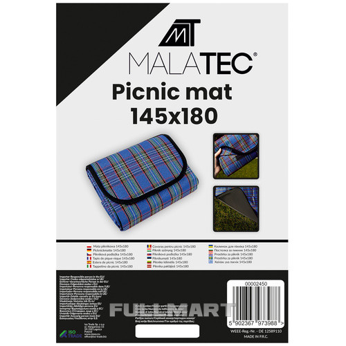 - СПЕЦИФІКАЦІЯ – колір: синій; матеріал: поліестер поверхня, дно: поліетилен; розміри (довжина/ширина) 145/180см; вага 500гр.