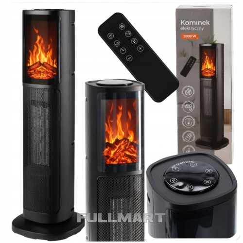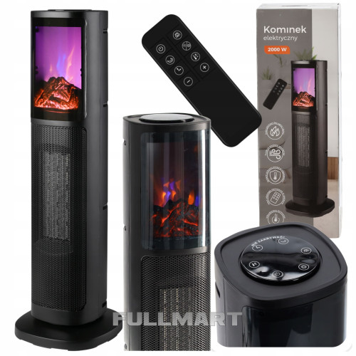 Колонний вентилятор-обігрівач із ефектом камінного полум'я 2000 Вт.