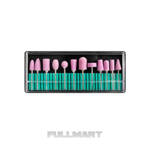 - 12 КАМНЕРЕЗОВ + КРЫШКИ – набор из обработанного камня, а именно оксида алюминия, средней зернистости. Фрезы можно использовать как в сухом, так и в мокром виде. Они идеально подходят для маникюра, педикюра и подологии. Набор многоразовый, можно стерилизовать и дезинфицировать. Входящие в комплект колпачки размещаются на переноске, их использование обеспечивает надлежащую гигиену во время процедуры.