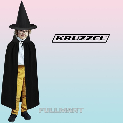 - ЧЕРНАЯ КАПЕА - изготовлен из качественного, струящегося материала. Является длинный и воздушный, элегантно и загадочно стекает по спине . Это добавляет маленькому волшебнику драматизма и загадочности. У накидки есть воротник, который можно накинуть на плечи или поднять для лучшего эффекта. Благодаря тщательно отделанным лентам вы сможете прикрепить накидку и предотвратить ее соскальзывание во время выполнения бесчисленных фокусов.