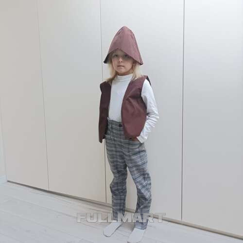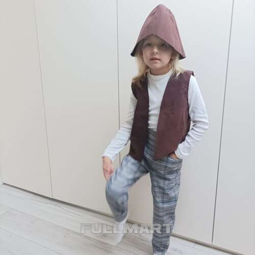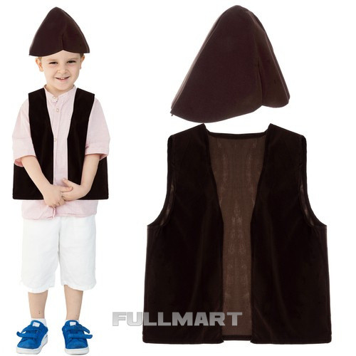 - СПЕЦИФИКАЦИЯ — размер: универсальный; материал: полиэстер; цвет: коричневый; возраст от 3 лет; размеры жилета 23,5 х 39,5 х 39 см; размеры кепки: 53,5 х 34; вес: 54 г; вес в упаковке: 76г.