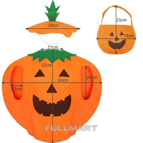 - ПОЛНЫЙ НАРЯД – полный Комплект из трех частей обеспечивает практичное использование. В комплект входит удобный жилет-чехол и головной убор в виде шапки, а также мешочек для вкусностей, собранных во время Хэллоуинского веселья.