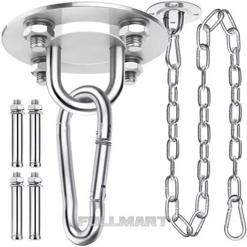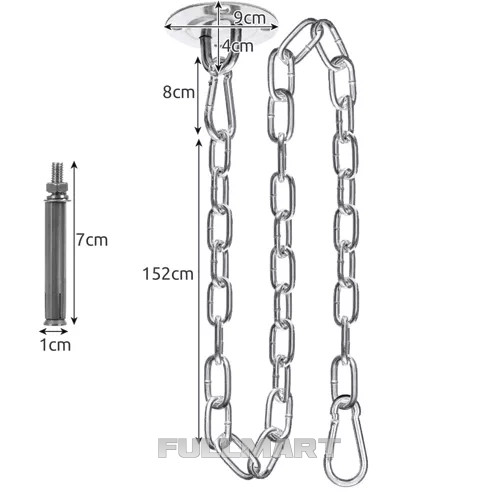 - ПОВНИЙ КОМПЛЕКТ – в комплект входять міцні елементи: карабіни, дюбелі, міцний та довгий ланцюг та стельовий кронштейн.