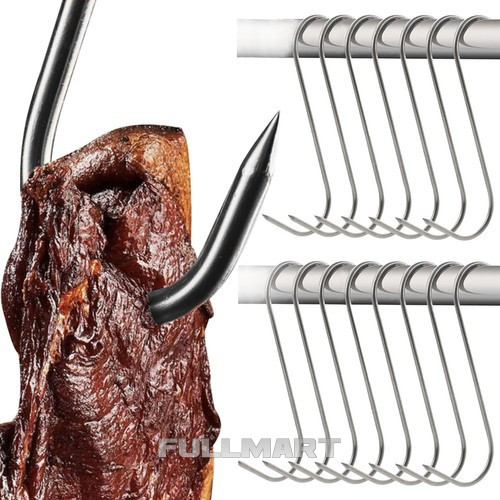 - ИДЕАЛЬНО ДЛЯ КОПТЕНИЯ МЯСА - начинка мяса на крючки для копчения облегчает приготовление домашнего мясного ассорти или рыбы в коптильнях. Крючки для мяса имеют острые концы, что позволяет легко втыкать их в мясо и подвешивать в коптильне .
