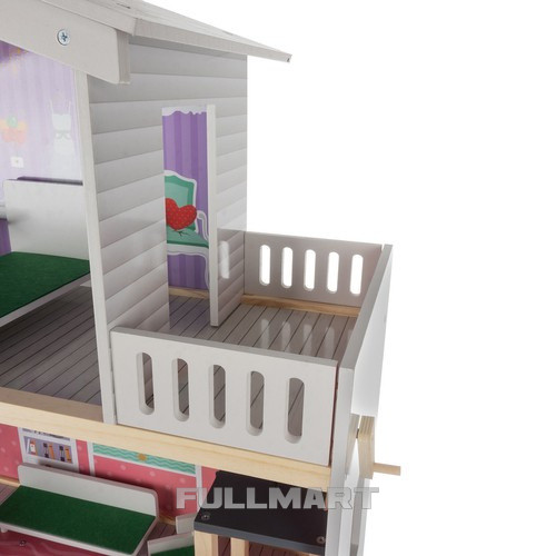 ПРОСТОРНИЙ - дерев'яний ляльковий будиночок розрахований на сім'ю з 2-х ляльок. Він має 3 рівні, цілих 4 кімнати та балкон .