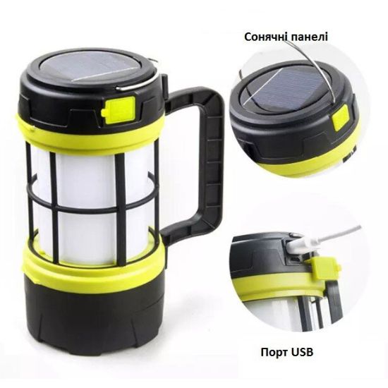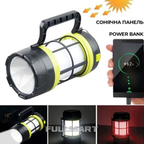 Переносний ліхтар 910-LED+COB – зручний гаджет, який активно застосовується у житті. Серед основних переваг можна виділити функцію PowerBank, вбудовану сонячну панель, потужні яскраві лампи, зручну ручку, за допомогою якої можна переносити пристрій будь-де.