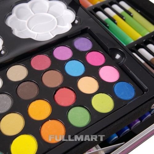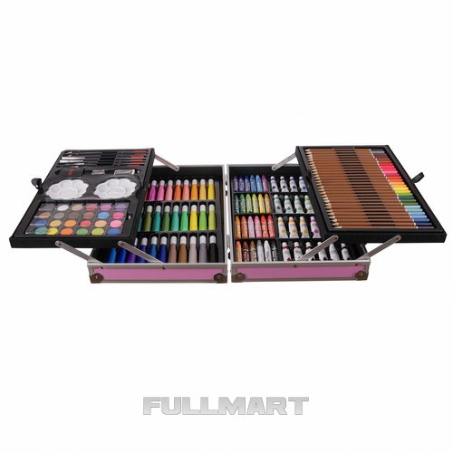 - ДОЛЖЕН БЫТЬ ПОРЯДОК – открыв чемодан, вы обнаружите множество высококачественных художественных материалов, тщательно разложенных и закрепленных в специально отведенных отделениях. Так вам будет легче содержать свои принадлежности в чистоте и порядке, не беспокоясь о том, что вы повредите или сломаете любимые мелки. В художественном наборе каждый найдет что-то для себя — ручки для раскрашивания , мелки и краски для рисования . Все это в насыщенных тонах, которые прекрасно смотрятся на бумаге или холсте.
