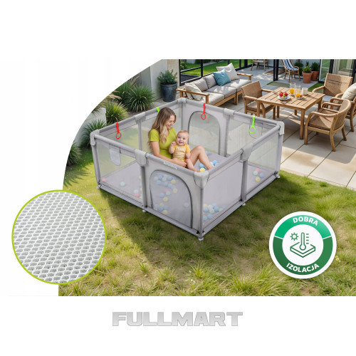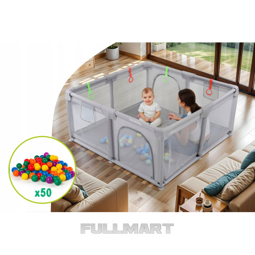 Дитячий манеж 140х140 см з чотирма ручками для дітей та 50 різнокольоровими м'ячами для гри!