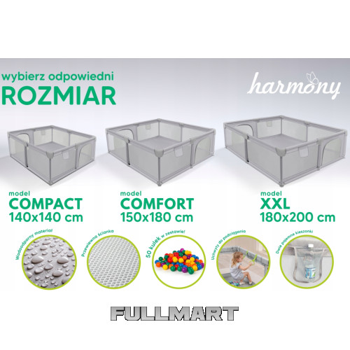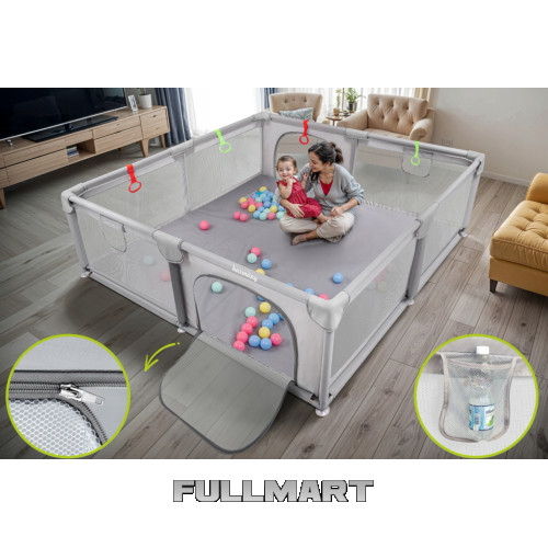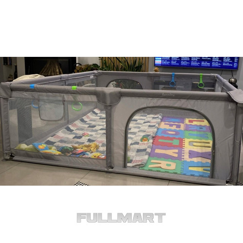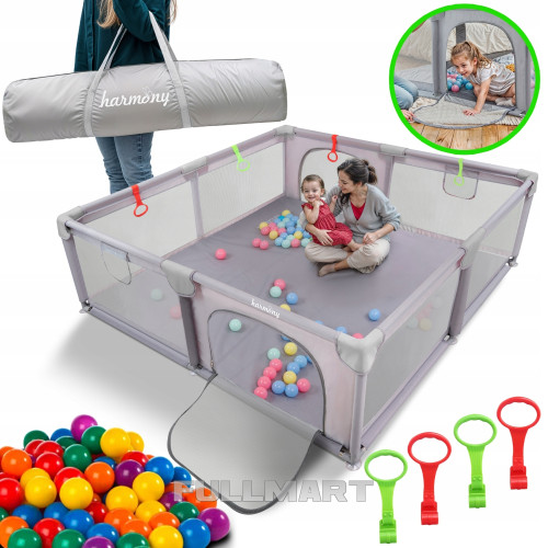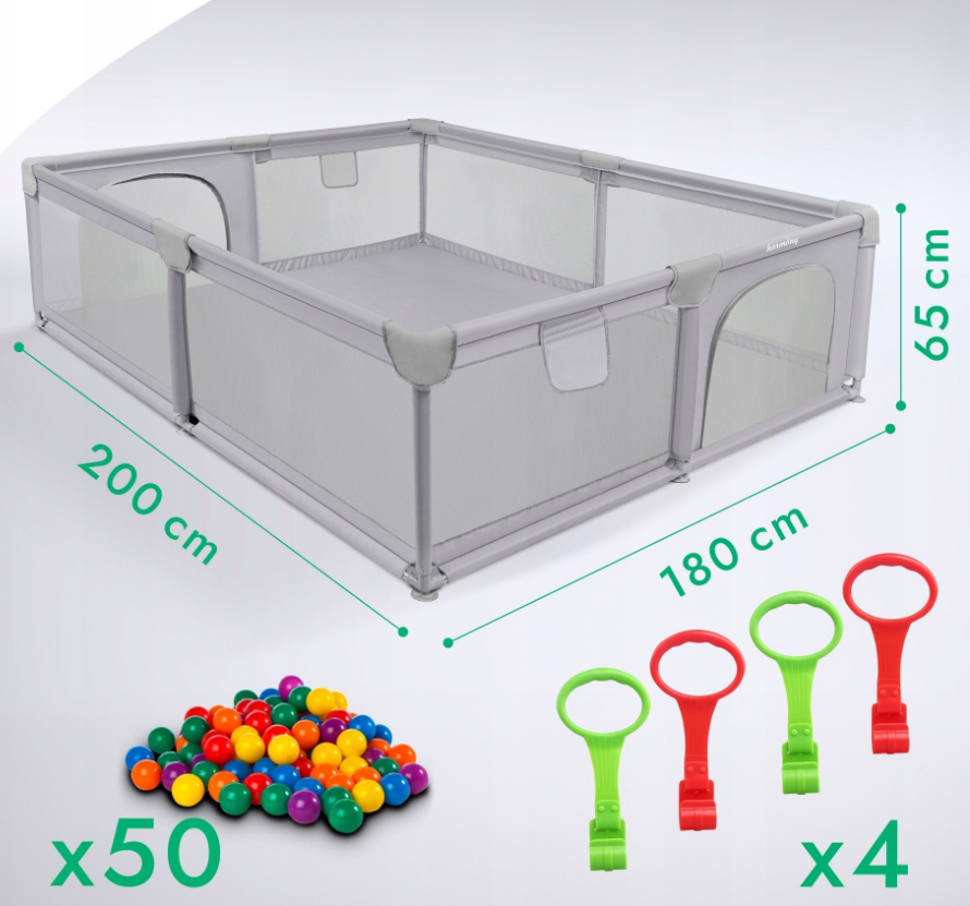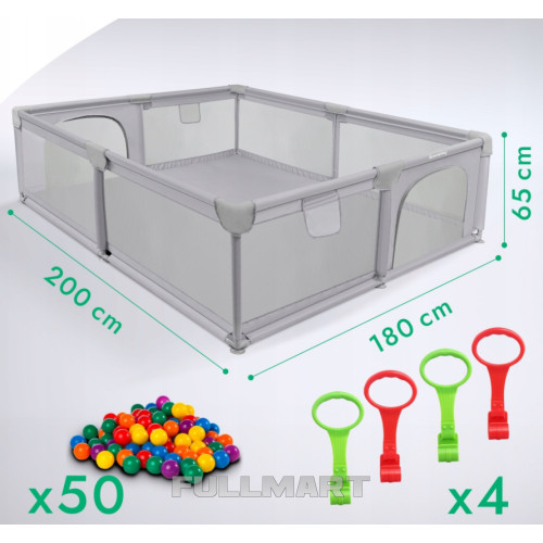 Дитячий манеж XXL 180х200 см із чотирма ручками для дітей і 50 різнобарвними кульками для гри! Призначений для дітей із перших днів життя.