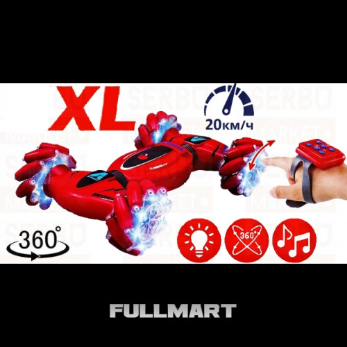 Машинка перевёртыш RQ-2093 с управлением от руки. Такого Вы еще не видели. Мало того, что она выполняет развороты на 360 градусов, ездит боком, ездит вверх ногами, очень быстрая и красивая, так же она управляется от браслета, который крепится на руку. Теперь машинка и драйвер одно целое. Опустил немного руку вперед, машинка мчится вперед, нужно объехать препятствие, легко, наклоняешь руку влево или вправо, и машинка тут-же реагирует на команду! Играться будут все, от мала до велика. Отличный подарок на любой праздник. Приятный бонус - машинка и пульт-браслет на аккумуляторах и заряжаются от обычного USB, теперь не придется тратить лишние деньги на батарейки. Данная модель имеет быструю скорость для интенсивных двухсторонних трюков.