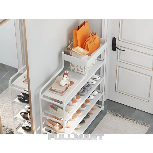 Ця п'ятиярусна полиця для взуття - відмінний варіант для тих, хто цінує порядок і функціональність у передпокої, вбиральні або спальні. Завдяки п'яти ярусам ви легко розмістите взуття, сумки, кошики та інші аксесуари усієї родини. Верхня полиця ідеально підходить для зберігання корисних речей чи прикрас.