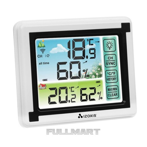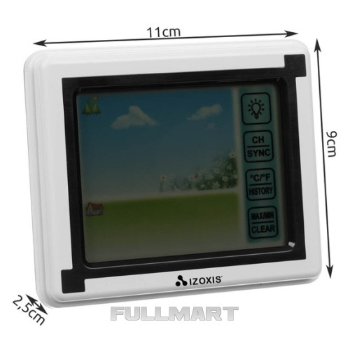 - СПЕЦИФИКАЦИЯ – цветной дисплей; 4 кнопки: подсветка, ch/sync, шаги/история, макс. мин/ясно; отображает: температуру и влажность в доме и температуру и влажность на улице; диапазон внутренних температур: от -20°C до 70°C / от -4°F до 158°F; диапазон наружной температуры: от -40°C до 70°C / от -40°F до 158°F; диапазон влажности: 20%-95%; единица измерения температуры: °C/°F по выбору; частота обновления: каждые 10 секунд; погрешность: температура +/- 1°С; погрешность: влажность +/- 5%; дальность беспроводного приема: 60 метров; частота беспроводной связи: 433 МГц; размеры: 11/9/2,5 см; вес: 0,244 кг.