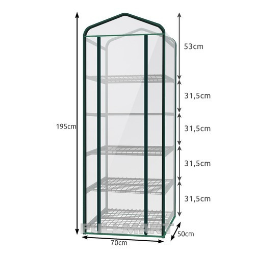 - 5 МЕТАЛЛИЧЕСКИХ ПОЛОК - это идеальное решение для людей, у которых мало места, но которые хотят наилучшим образом заботиться о своих растениях. Идеально подходит для сада, террасы или балкона. 5 полок обеспечат большую вместимость теплицы.