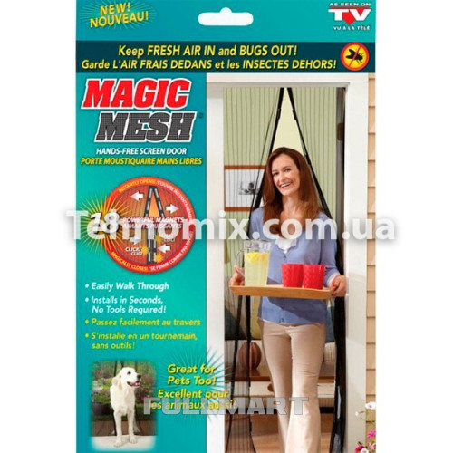 Москітна сітка на магнітах Magic mesh кріпиться на проріз дверей за допомогою двосторонньої липкої стрічки або приколюється кнопками. А коли ви проходите, завдяки 18 магнітам штора автоматично закривається прямо за вами. Добре працює навіть за сильного вітру. Ідеально підходить для будь-яких дверей, окон чи дачних веранд. Абсолютно проста в установці та експлуатації. Сітка Magic mesh перешкоджає проникненню насекомих не порушуючи природну циркуляцію повітря, затримує тополиний пух та дрібний мусор. При пранні сітка не втрачає своїх властивостей