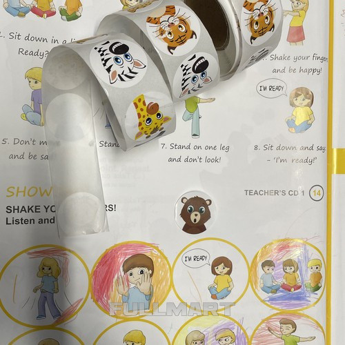 - 500 СТИКЕРОВ - набор из 500 сотен красочных мотивационных наклеек представляет собой коллекцию красочных и милых наклеек, которые они являются отличным педагогическим инструментом . В ленте целых 500 красивых стикеров, выражающих различные эмоции - 6 животных улыбаются в разной степени и 2 с удивленными лицами . Наклейки очень легко отрываются от ленты, а благодаря качественному клею их легко приклеивать к различным поверхностям.