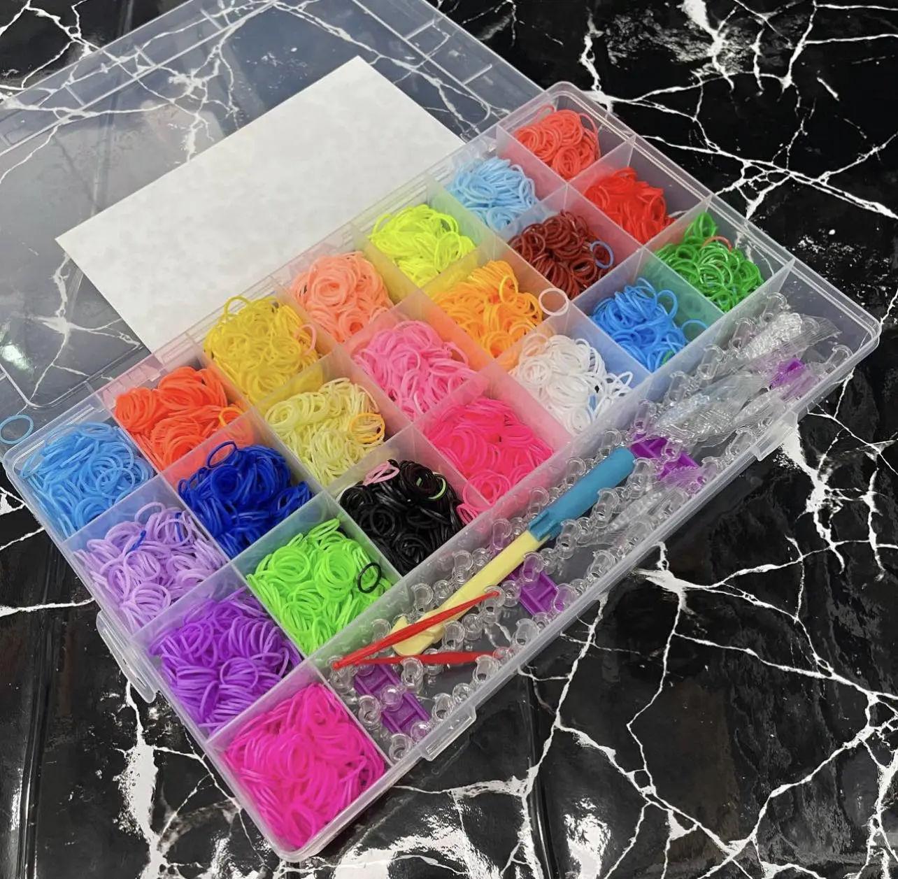 Мега великий набір резиночек для плетіння браслетів 8400 шт. буде чудовим подарунком дитині на будь-яке свято і не лише. Цей вид творчості виробляє в дитини посидючість, увагу, прагнення доробити розпочате остаточно.