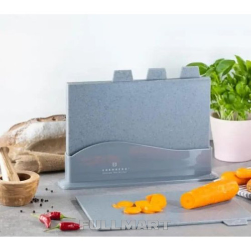 Набір дощок складається із 5 предметів. Добре підійде для тих, хто любить заводити окремі досточки для кожного виду продуктів. Купивши цей набір, ви заощадите час на підбір дощок та місце для зберігання. У набір входить підставка та 4 дошки: Для риби, м'яса, овочів та гарячих продуктів.