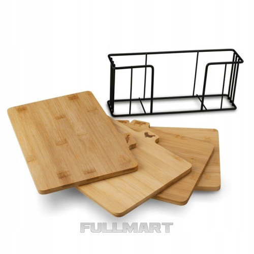 У набір входить: 4 бамбукові дошки, металева підставка.