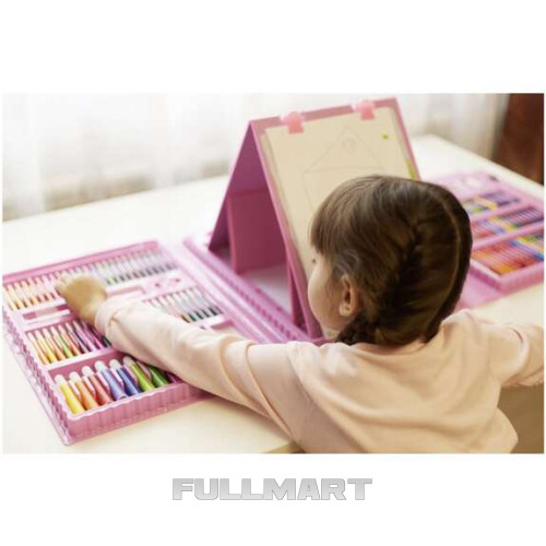- ПРАКТИЧЕСКИЙ ЧЕМОДАН – в детский художественный набор входит практичный чемоданчик с тиснением, который оснащен застежкой на 3 липучки и удобной ручкой. Благодаря этому Перевозить чемодан удобно и очень легко, а содержимое не разваливается. Набор идеально подходит для похода в школу, детский сад, на природу или в гости к другу.
