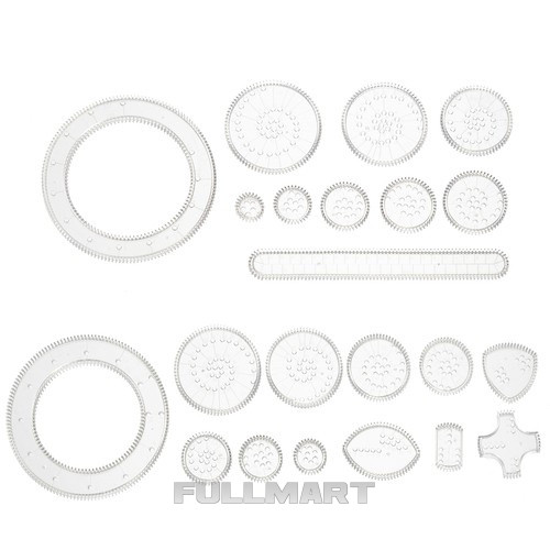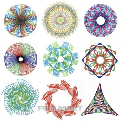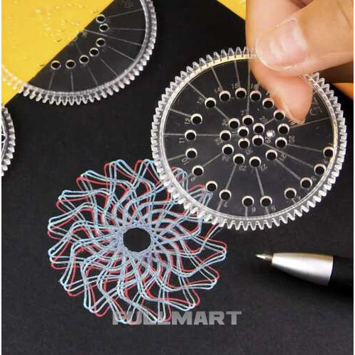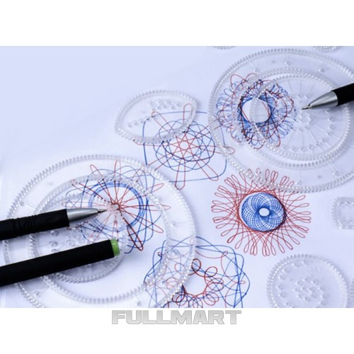 - ИНСТРУМЕНТЫ ДЛЯ ПОСТРОЕНИЯ МАТЕМАТИЧЕСКИХ КРИВЫХ - набор спирографов инновационный инструмент для создания сложных математических закономерностей на основе таких кривых, как гипотрохоиды и эпитрохоиды . Набор полностью изготовлен из высококачественного полиуретана . прочный, точный и удобный в использовании. Разделенный на две части, предоставляет разнообразные элементы рисования. В первом части расположены большое колесо в форме кольца и 7 дополнительных колес с разным количеством отверстий , позволяющих создавать уникальные узоры. Кроме того, в этой части мы найдем геометрические шаблоны: эллипсы, крест, прямоугольник и треугольник , которые позволяют создавать более сложные формы. Вторая часть в комплект входит кольцо, 8 зубчатых колесиков и линейка с полукруглыми зубцами , которые помогут рисовать идеально симметричные кривые.