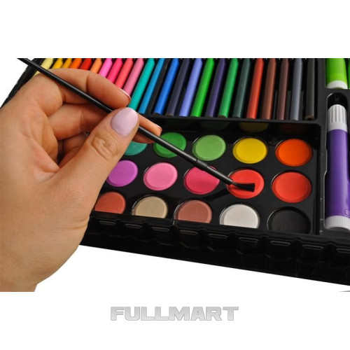 - 288 ЭЛЕМЕНТОВ – используя огромный выбор из 72 мелков, 96 маркеров, 60 масляных пастелей, 18 акварельных красок, 3 карандашей, 3 кистей с емкостью для воды, 30 скрепок, 2 точилок и 2 ластиков, мы легко создадим самые изысканные, креативные и оригинальные работает.
