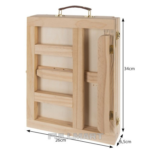 - ЛЕГКАЯ И ПРАКТИЧНЫЙ ЧЕМОДАН 2 В 1 – мольберт складывается в чемодан. Чемодан имеет прочную удобную ручку, что делает его транспортировку простой и комфортной. Имеет ящик для аксессуаров , который закрывается прочными металлическими пряжками, благодаря чему чемодан будет плотно закрыт и ничего не выпадет и не потеряется.