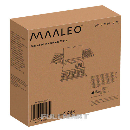 - 83 ЭЛЕМЕНТЫ — набор для рисования в чемодане состоит из множества элементов, в том числе: чемодан с мольбертом, альбом для рисования, 10 кистей для рисования, 12 карандашей разной мягкости (2хН, 2 НВ, 2хВ, 2х2В, 2х4В, 2х6В), ластик, точилка, 8 акриловых красок, палитра, 12 акварельных красок, 28 шт. цветные карандаши, 8 масляных пастелей.