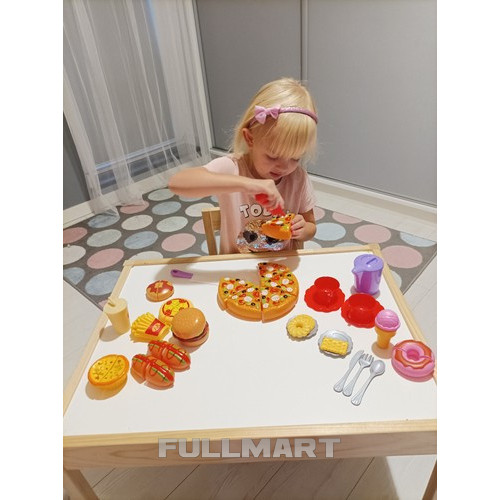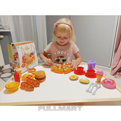 - НАБІР ІГРАШОК ФАСТ-ФУД - цей «смачний» набір іграшок сподобається кожному маленькому кухареві. Він складається з цілих 42 елементів, серед яких: таця, хот-дог, піца та картопля фрі. Ці виключно «смачні» продукти дозволять вам приготувати вишукані страви для вашої дитини . Буде чудовим доповненням до іграшкової кухні (є на інших аукціонах).
