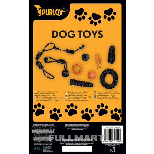 - РАЗНООБРАЗИЕ ИГРУШЕК - набор из 10 игрушек для собак . это идеальное решение для ваших питомцев различные формы развлечений и мероприятий . В комплект входит: три разных рывка – с двумя петлями, с клубком и законченный узлами . Эти игрушки изготовлен из прочной черно-белой веревки , которая не только привлекает внимание собаки, но и выделяет ее прочный и устойчивый к повреждениям . Кроме того, в комплект входят плетеный прорезыватель в форме лоскута, шарика и кольца диаметром 17 см , которые дают собаке разнообразие и новые стимулы для игр.