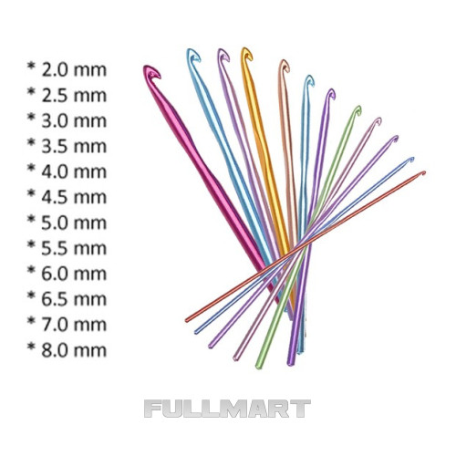 - ПРОФЕССИОНАЛЬНОЕ ВЯЗАНИЕ КРЮЧКОМ - В набор входят 12 разноцветных крючков разного размера от 2,0 мм до 8,0 мм. Они имеют эргономичную форму, плоскую вставку и глубокие крючки, благодаря которым пряжа не скользит и хорошо зацепляется.