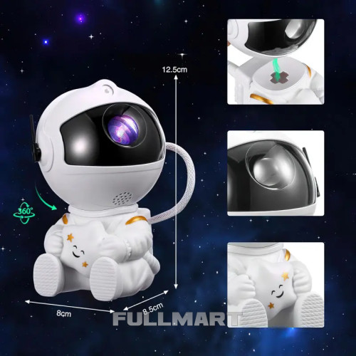 Шолом проектора рухливий, що дозволяє налаштовувати кут проекції на стелі, стінах чи інших поверхнях. Голова астронавта здатна обертатися на 360 градусів, забезпечуючи свободу вибору проектування зоряного неба.