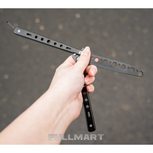 - БЕЗОПАСНЫЙ — Нож-бабочка не имеет острого лезвия. Нож безопасен потому что у него тупое (закругленное) лезвие. Лезвие неострое и из-за своей конструкции не подлежит заточке.