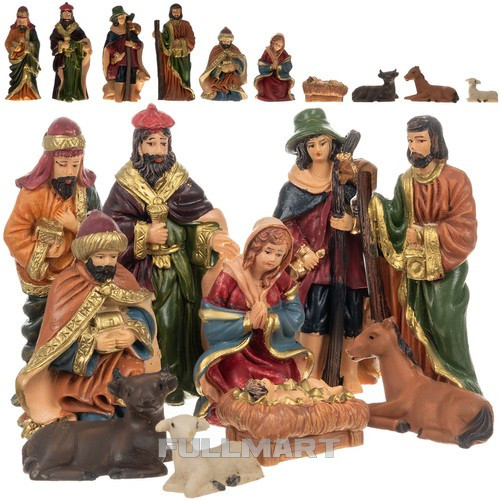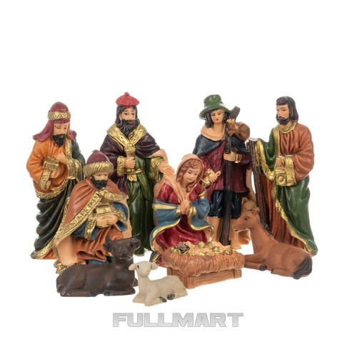 полный комплект - набор содержит 10 фигурок, среди которых ключевые персонажи: Младенец, Мария, Иосиф, Три короля, Пастух и животные, это все фигурки, необходимые для создания полноценного вертепа
