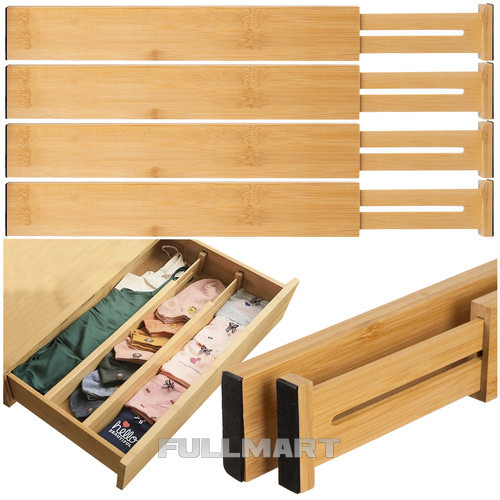 Органайзер для ящиків, регульований роздільник, бамбуковий роздільник, 4 шт.