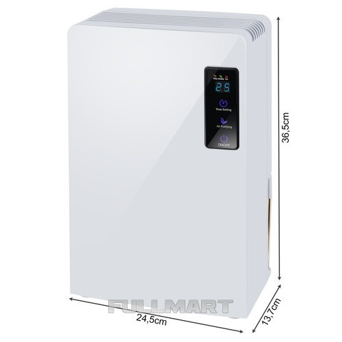 - СПЕЦИФИКАЦИЯ - цвет: белый; материал: АБС+ алюминий + АС+ ПВХ; дисплей: ЖК, показывает: температуру и влажность; таймер: 24-часовой; Очистка и осушение воздуха 2в1; способность работать при температуре ниже 0: да, до -5оС; функция автоматического размораживания; площадь помещения: до 30м2; очистка: для разложения загрязнителей воздуха используется технология очистки ультрафиолетом и диоксидом титана ( TiO2 ); уровень шума: 40 дБ; производительность сушки: до 700 мл в сутки при температуре 25°С и влажности 85 %; емкость резервуара для воды: 1800 мл; возможность слива воды через шланг: да; напряжение: 220-240В; мощность: 90 Вт; автоматическое отключение после заполнения бака: есть; режим работы: на основе системы Пельтье; Подходит для: дома, офиса и т. д.; съемный резервуар для воды; размеры: 36,5/13,7/24,5 см; длина шланга: 100 см; длина кабеля: 1,30 м; вес: 2,382 кг; вес упаковки: 2,781 кг.