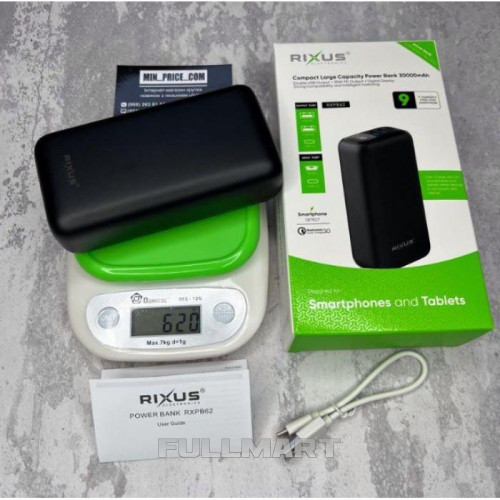Power bank Rixus 20W 30000 mAh реального обсягу! Характеристики пристрою не завищені, повністю відповідає опису, легко зарядить будь-який телефон від 5 разів. Здатний одночасно подавати живлення на кілька пристроїв, наприклад, ви можете підключити домашній інтернет (роутер + маршрутизатор) і одночасно заряджати свій телефон. Ідеальний повербанк із функціоналом, який підійде для більшості цілей. Rixus 20W має функцію швидкого заряджання PD і QC, завдяки якій ви зможете швидко зарядити свої гаджети. Повербанк відмінно захищений від перепадів напруги та перегріву під час роботи. Для відстеження залишкового заряду є невеликий Led-дисплей на задній стороні. Три роз'єми для заряджання, включаючи Usb Type-C, дозволять одночасно зарядити три пристрої.