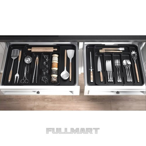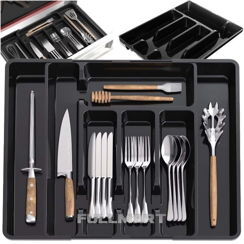 Чорний органайзер для столових приладів у кухонний ящик із висувною вставкою!