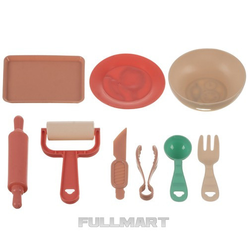 - ДУЖЕ ВЕЛИКА КІЛЬКІСТЬ АКСЕСУАРІВ – в комплект входять безпечний ніж, вилка, ложка, миска, тарілка та таця. щипці та 2 ролики. Завдяки цим аксесуарам ваша дитина зможе створити із пластиліну безліч речей. Від їжі до тварин та людей. Вони обмежені лише вашою фантазією.
