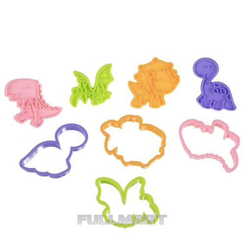 - ШТАМПЫ, ВЫРЕЗКИ И ФОРМЫ ДЛЯ ЯИЦ — в наборе есть безопасные фрезы и штампы, которыми штампуем массу. Это разные динозавры, Дополнительно в комплект входит форма для создания яйца динозавра .