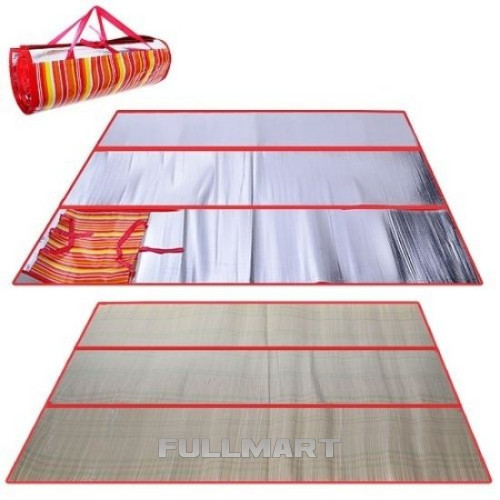 Пляжний килимок-відмінне рішення для відпочинку на пляжі! Фольга з одного боку не дозволяє нагріватися від піску, соломка з іншого дає можливість просто протерти його! Килимок зручний у транспортуванні, не займає багато місця, компактно складається, теплоізоляція не дає обпектися гарячим піском, на відміну від покривал і рушників. Великий пляжний килимок складаний, при виробництві якого використані солома та фольга, гарний тим, що його поверхня швидко висихає. Крім того, з нього легко скинути пісок, а водонепроникна підкладка з фольги зі зворотного боку забезпечує сухість.