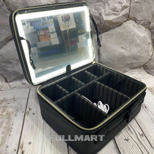 Основна перевага цієї косметички – наявність вбудованого дзеркала з підсвічуванням світлодіодною лампою. Це забезпечує яскраве та рівномірне освітлення обличчя, дозволяючи вам контролювати процес макіяжу, незалежно від умов навколишнього середовища. Завдяки цьому ви завжди зможете отримати бездоганний результат та досягти ідеального образу.