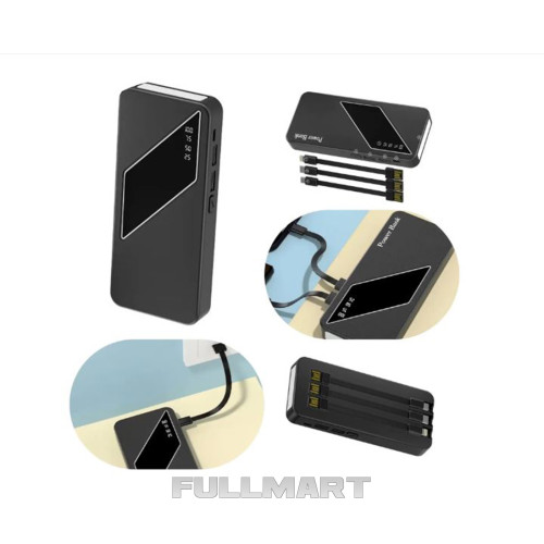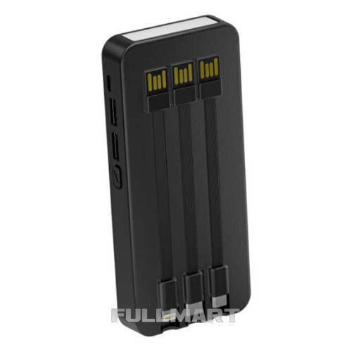 Power Bank 50000 mAh – зовнішній акумулятор, який не підведе у дорозі. У ньому зосереджено велику ємність 50000 мАг. Такого запасу енергії вистачить у середньому на 6–8 повних зарядів смартфона. На торці розташований яскравий світлодіодний ліхтар, який можна використовувати як запасне джерело світла під час кемпінгу або як настільна лампа. З його допомогою ви зможете заряджати два пристрої одночасно. Сам повербанк заряджається будь-яким кабелем: USB-Type-C, Lightning або micro-USB. На задній панелі в поглибленнях знаходяться три кабелі USB-A - Lightning/Type-C/microUSB, у будь-який момент можна зарядити більшість різноманітних пристроїв.