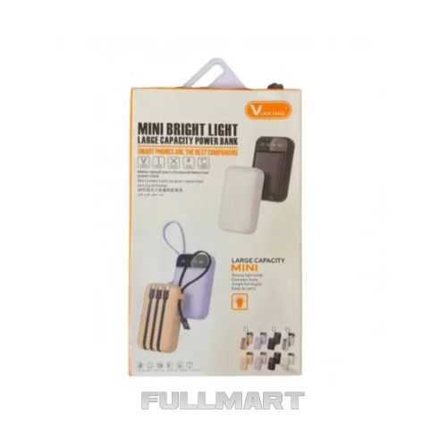 Power Bank 50000 mAh – зовнішній акумулятор, який не підведе у дорозі. У ньому зосереджено велику ємність 50000 мАг. Такого запасу енергії вистачить у середньому на 6–8 повних зарядів смартфона. На торці розташований яскравий світлодіодний ліхтар, який можна використовувати як запасне джерело світла під час кемпінгу або як настільна лампа. З його допомогою ви зможете заряджати два пристрої одночасно. Сам повербанк заряджається кабелями: USB, Type-C або micro-USB. На задній панелі в поглибленнях знаходяться три кабелі USB-A - Lightning/Type-C/microUSB, будь-якої миті можна зарядити більшість різноманітних пристроїв.