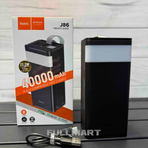 Повербанк із ліхтариком HOCO LED Powermaster J86 40000mAh | 2USB/Type-C, PD/QC, 5A/22.5W|