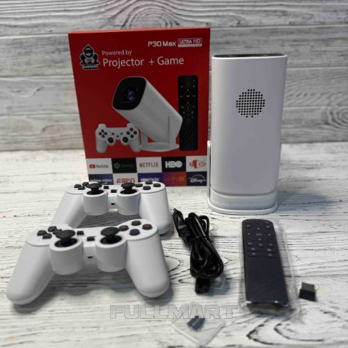 Смарт проектор-ігрова приставка R30 MAX BLACK з 2 джойстиками - ідеальне рішення для любителів відеоігор та мультимедіа. Цей компактний ігровий проектор поєднує функції приставки і проектора, дозволяючи насолоджуватися іграми і фільмами в будь-якому приміщенні.