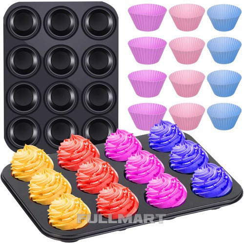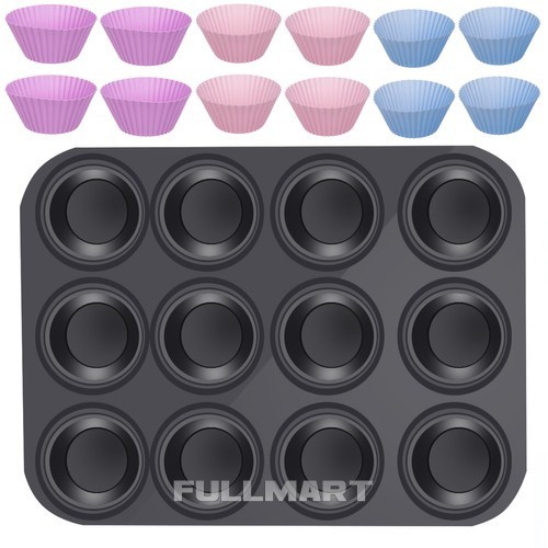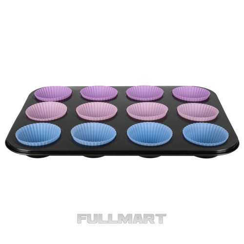ТЕФЛОНОВАЯ ПРОТИВНЯ ДЛЯ МАФФИНОВ + 12 СИЛИКОНОВЫХ ФОРМ